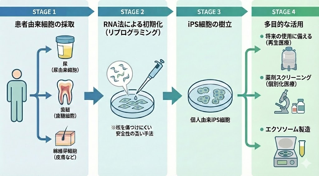 個人由来iPS細胞樹立・薬剤スクリーニング・エクソソーム製造