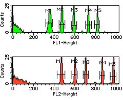 リプロセルでは、FCMの精度管理として、特定の蛍光標識MoABを用いた際に、規定蛍光強度が検出されるよう初期設定を行っており、各蛍光ごとに分子量の異なる既知ビーズを用いることで厳格な精度管理を行っております。また、臨床検査技師などの有資格者が検査を実施しており、日本組織適合性学会のQCワークショップに参加するなど外部精度管理にも力を入れております。