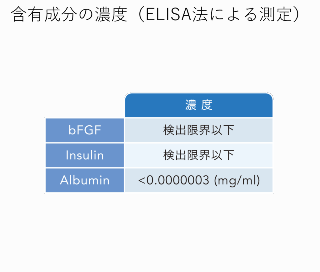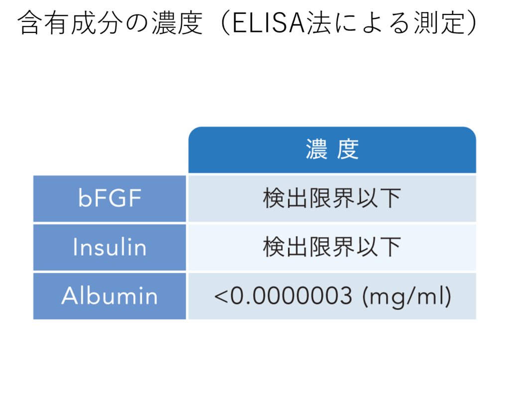 実際に、リプロセルのiPSエクソソームに含まれる成分を検証したところ、培地に添加されている成分の一部は検出限界以下まで下がっていることが確認されました(下左図)。