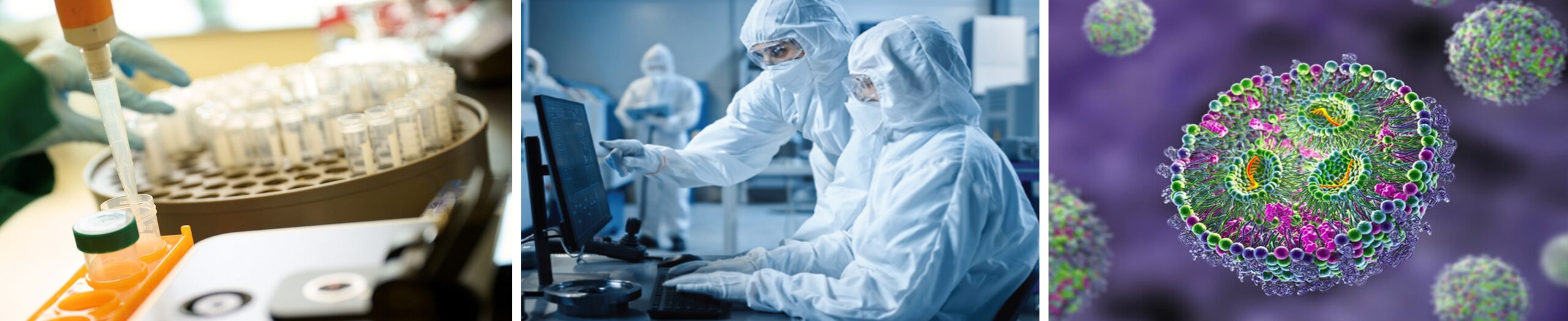 バーナル社は、自社でプラスミドDNA作成用のセルバンクを有しており、in vitro転写(IVT)、キャップ構造の付加、精製を経て、高品質なmRNAを製造します。さらに、mRNAのキャリアとなる脂質ナノ粒子(LNP)への封入(カプセル化)も実施します。一般的にmRNAは体内での安定性が低いため、多くの場合は脂質ナノ粒子(LNP)のようなキャリアと同時に使用されます。 mRNA/LNPのカスタム製造の場合、ご要望の遺伝子配列をお知らせください。脂質ナノ粒子(LNP)に関しては、お客様の要望に応じて、MC3、ALC-0315、SM-102、CKK-E12、DOTAPといった主要な脂質のを組み合わせて用いることができます。