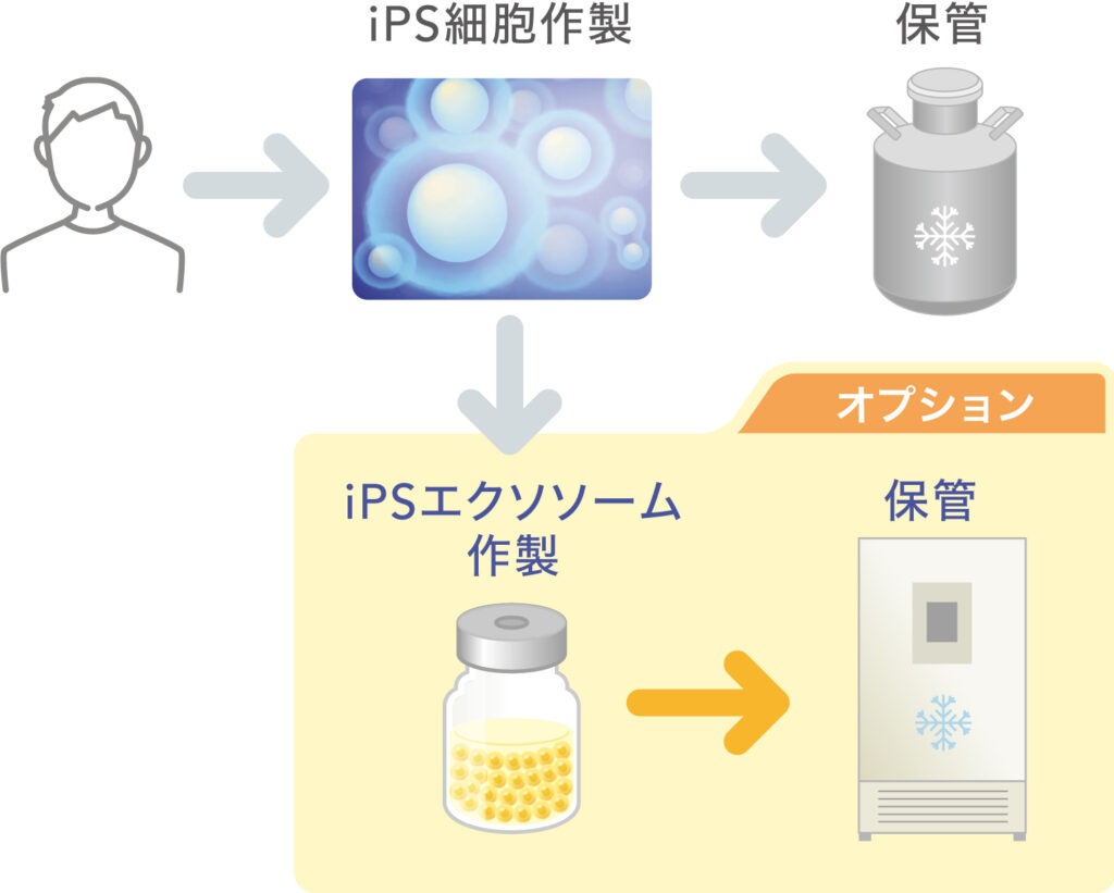 ご自身のiPS細胞からエクソソームを作製し、iPS細胞と同様に長期保管することができます。