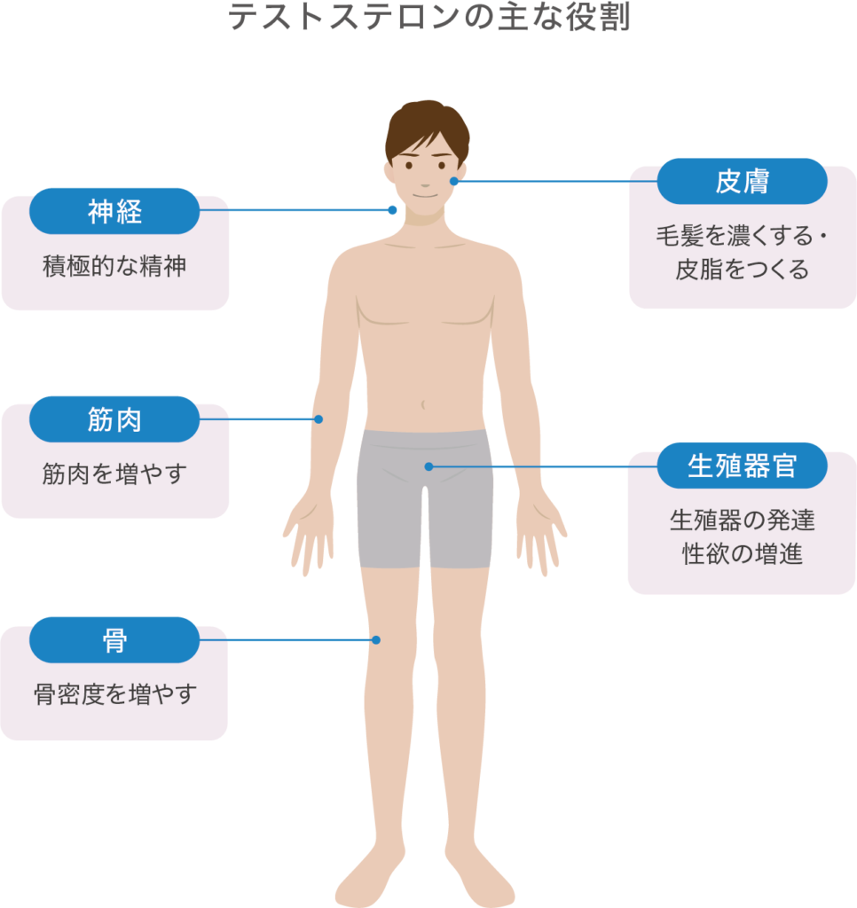 テストステロンは筋肉の増大、骨格の発達、性器の成熟、皮脂腺の肥大、体毛の増加、そして性欲や気力、集中力を保つために欠かせません。一般的に、男性にとって非常に重要なホルモンとされていますが、実は女性にも必要なホルモンであり、女性の健康にも多くの影響を及ぼします。