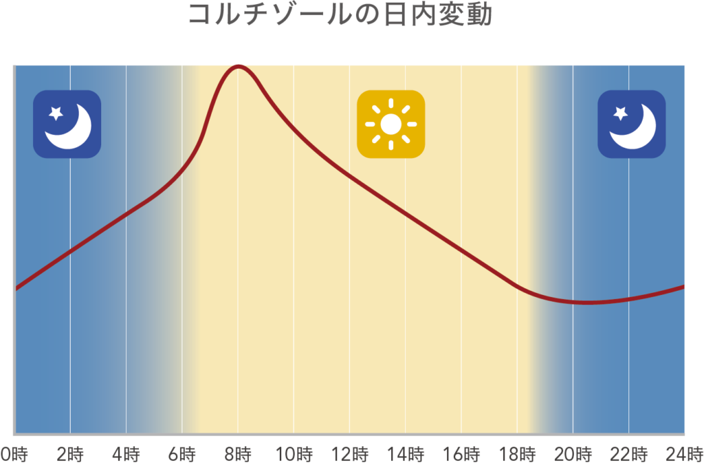 一方、コルチゾールのレベルが低すぎる状態が続いた場合は、疲労感、低血圧、体重減少、食欲不振、筋力低下などの症状が見られます。